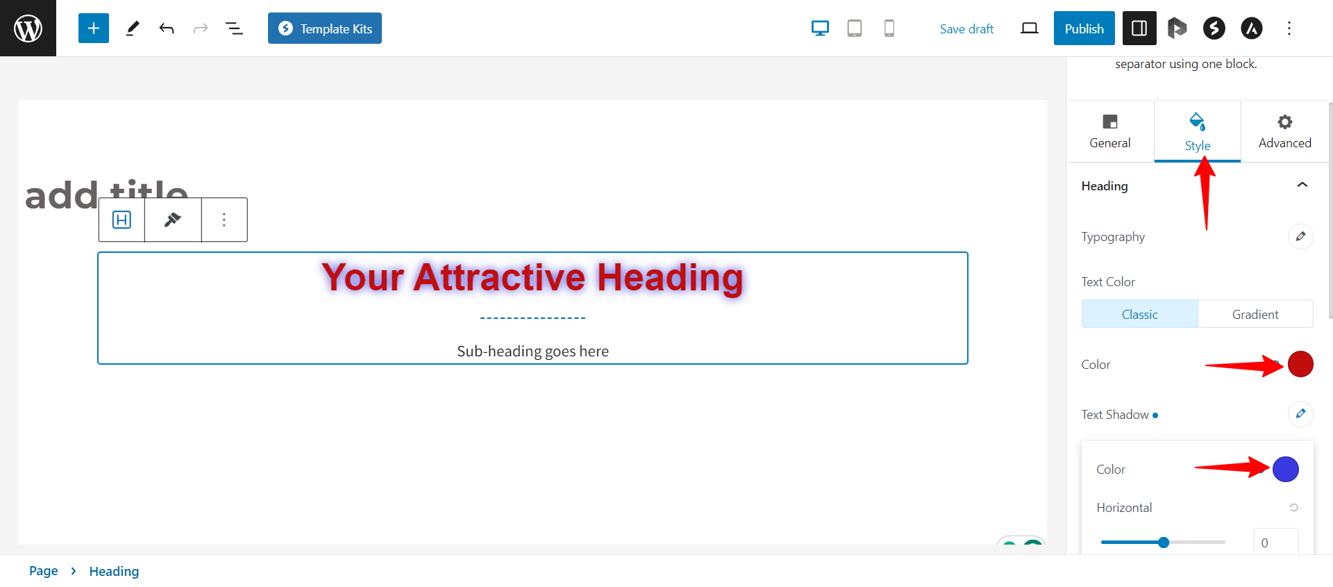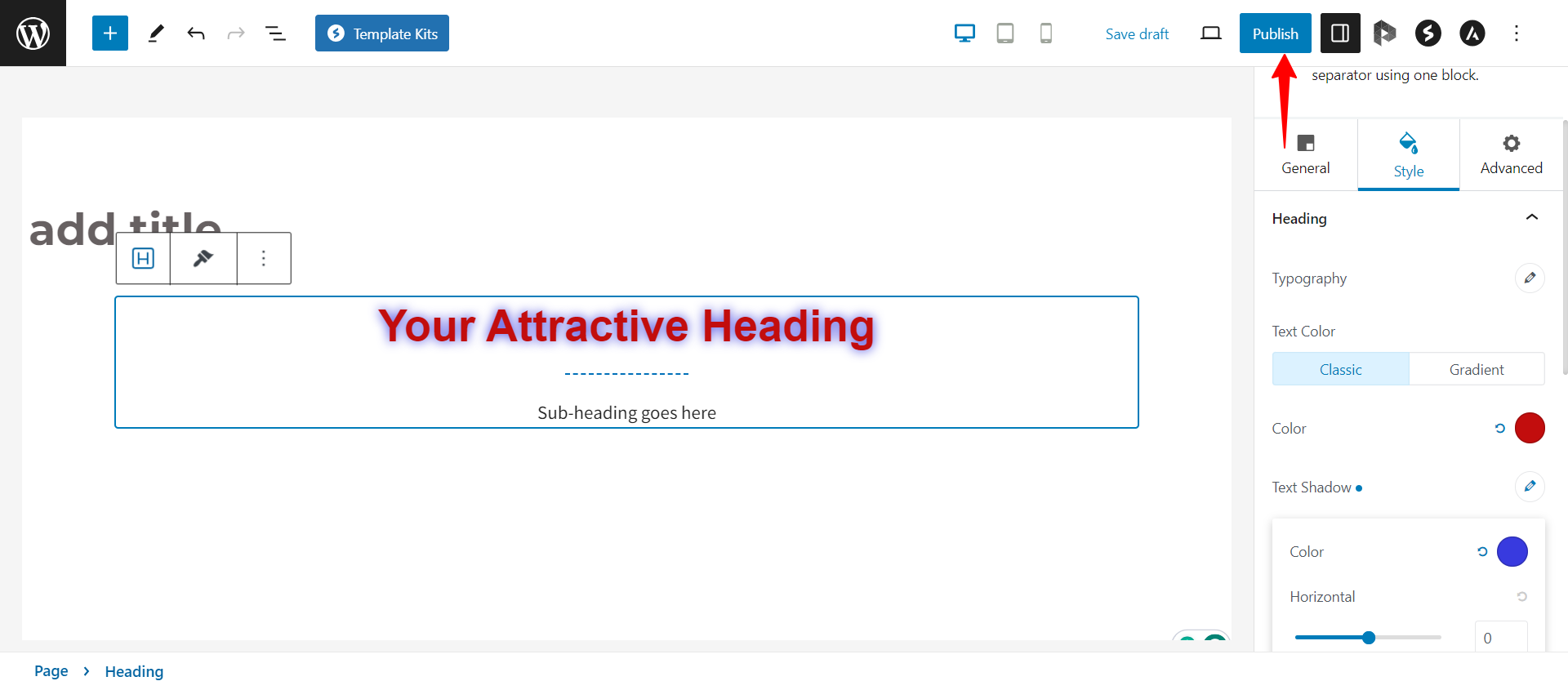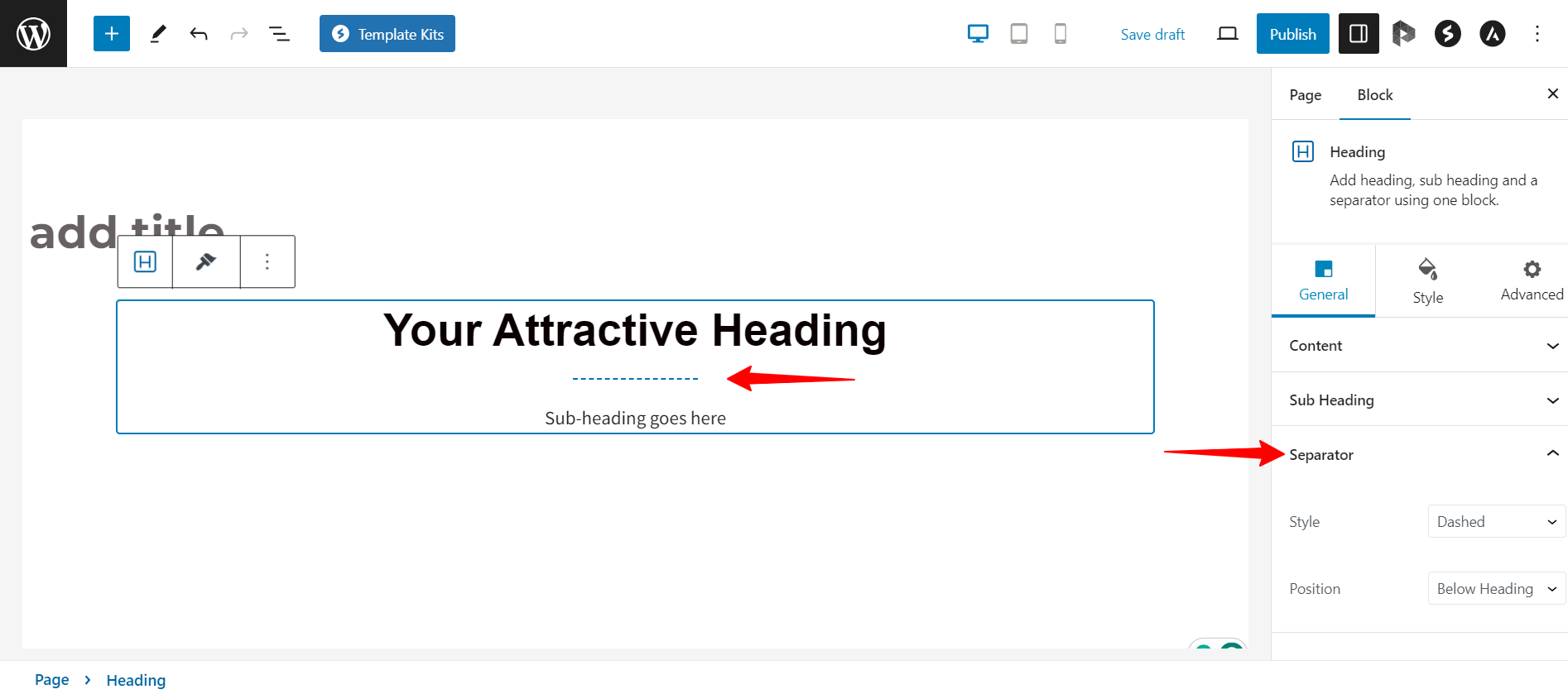 - You can add a separator between the main heading and subheadings. Also, you can customize the separator’s height, width, and color options.