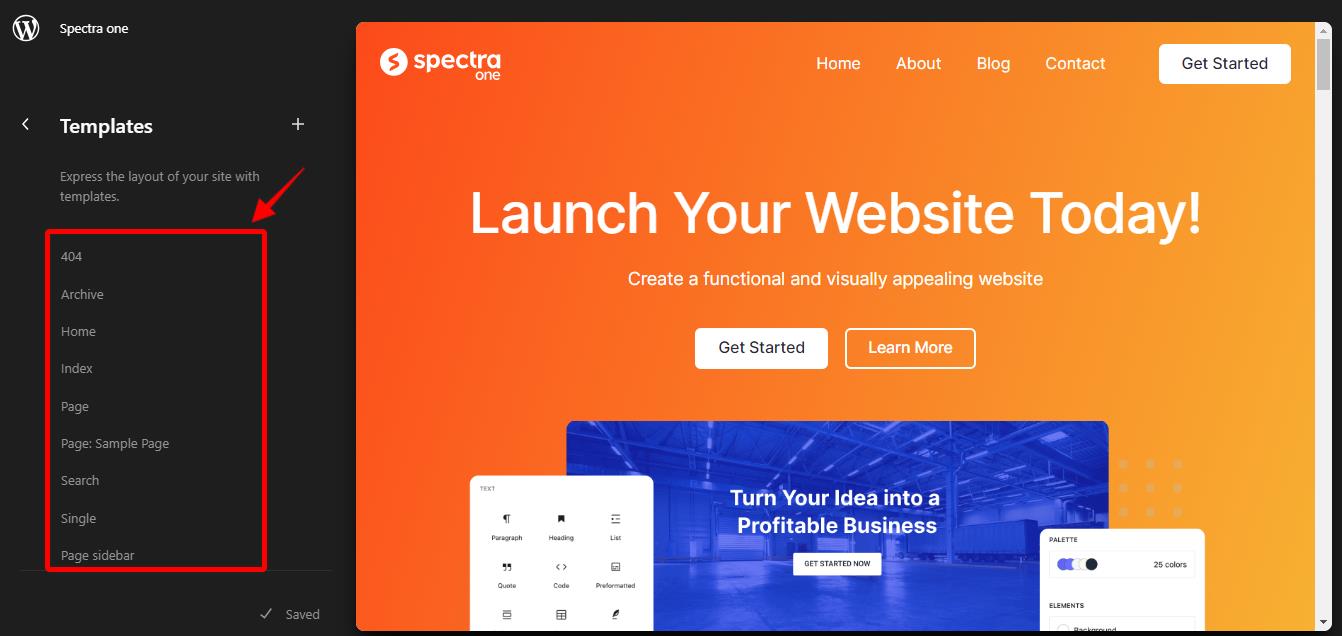 Another powerful aspect of Full Site Editing in the Spectra One theme is the ability to create custom templates. You can design unique templates for different page types, such as blog posts, contact pages, or portfolio pages, allowing you to maintain a consistent design throughout your website. You can find this option under the templates.