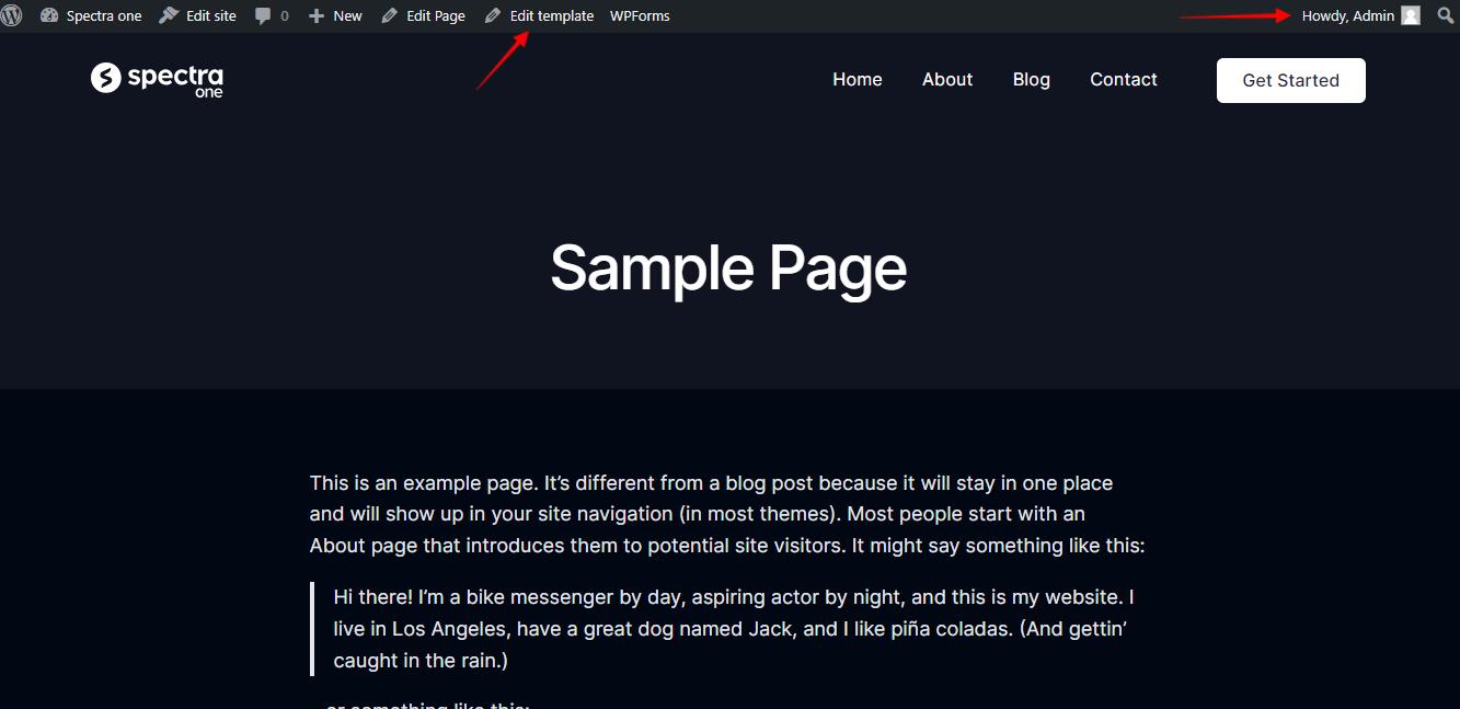 / Documentation /Spectra One/ Exploring the “Edit Template” Feature in the Admin Bar
