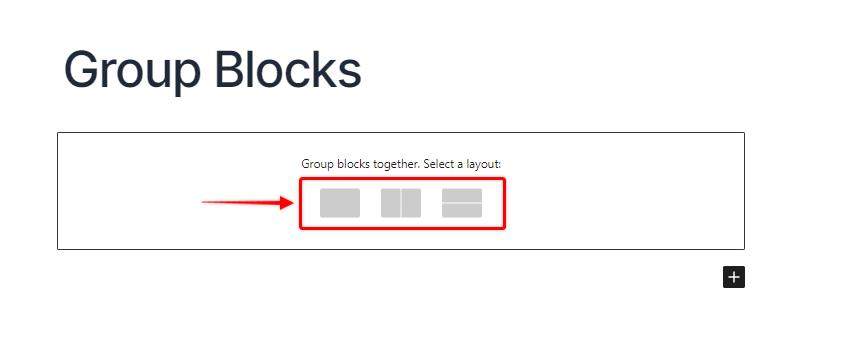 1. You will be asked to choose a layout for the Group Block. Currently, there are three different layouts that you can choose from. You can select a layout based on your requirements.