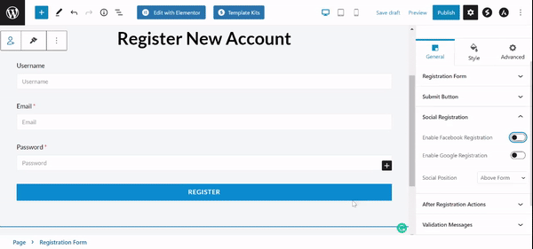 You have the option to enable Facebook and Google Registration here. Also, you can display the social registration above or below the form.