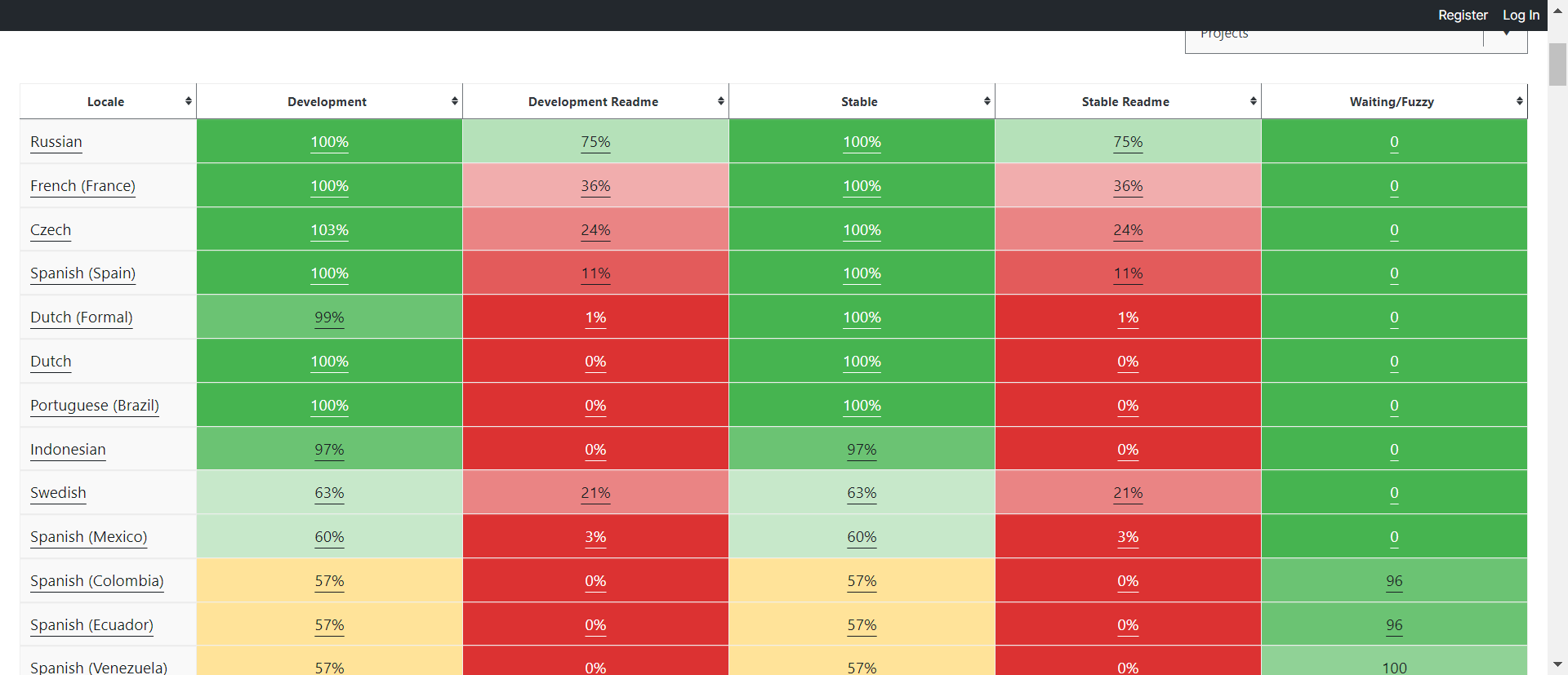 • Waiting: are the strings that are translated by contributors, but yet need approval by the validators.