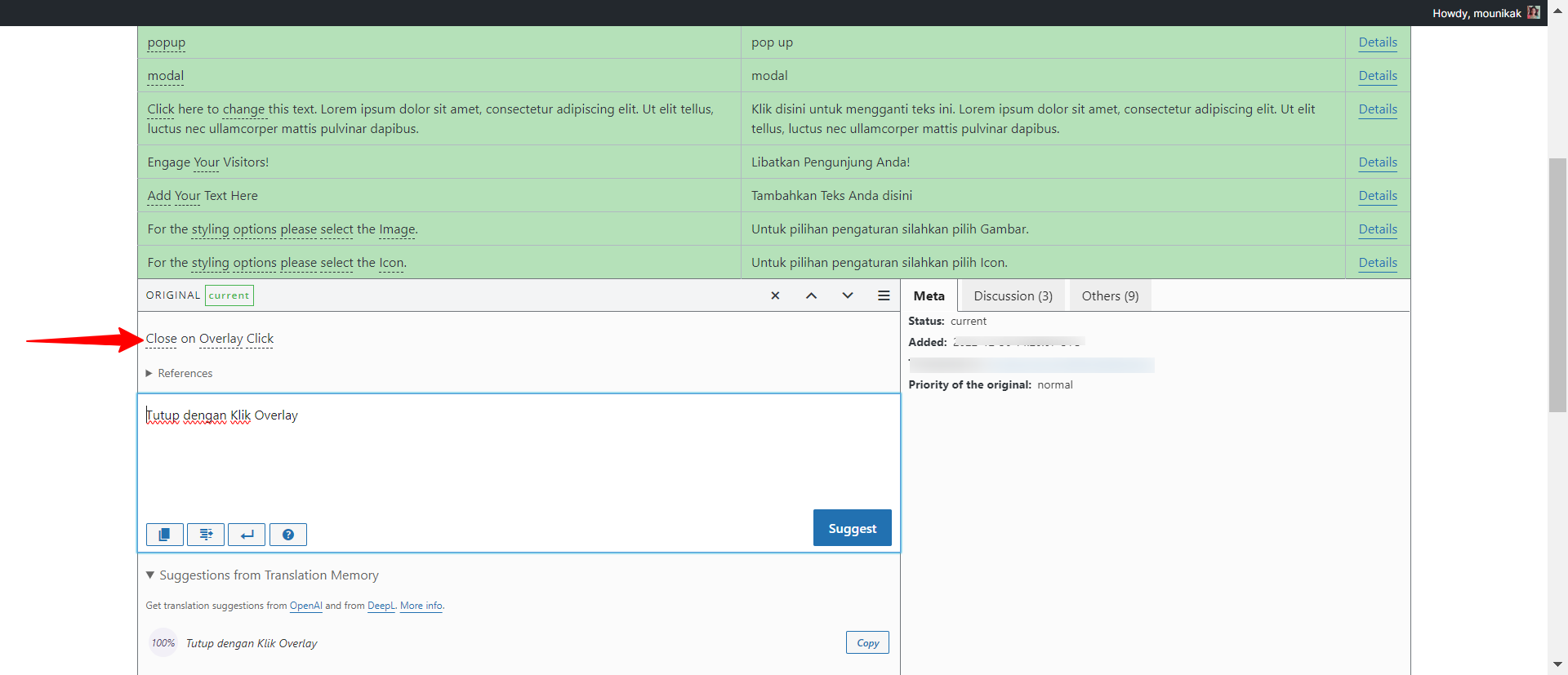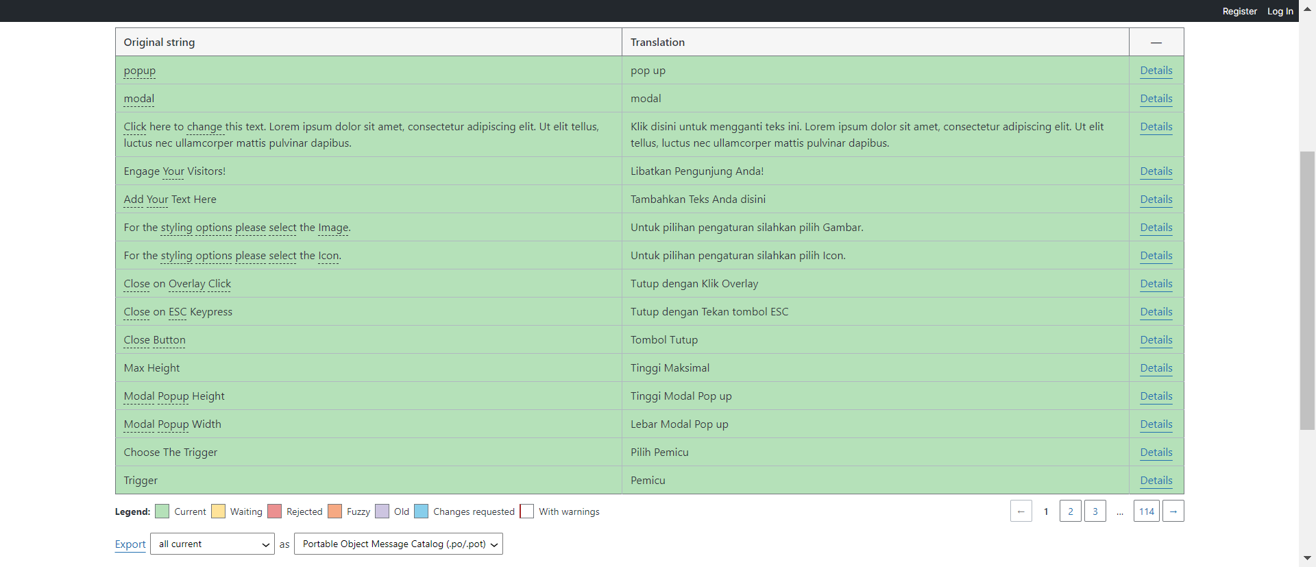 Should you wish to implement this translation in your website immediately, you can export the current translation file in the .po & .mo format and use on your website by uploading it to the languages folder using FTP / SFTP with correct naming convention.